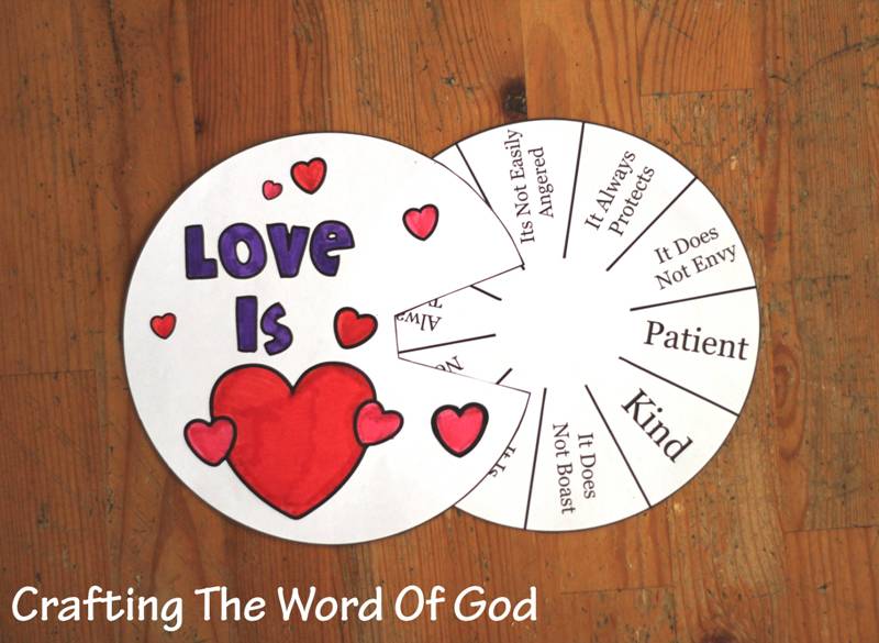 Esta simple manualidad es un lindo recuerdo de este pasaje de la Biblia. Cada giro de la ruleta revela una característica diferente de cómo la escritura describe el amor verdadero.